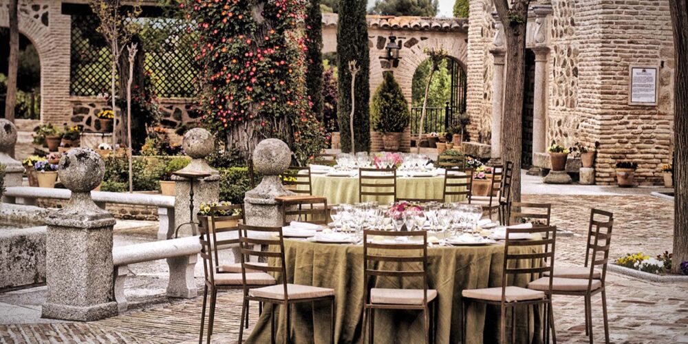 Y puesto que la vegetación es un factor imprescindible y omnipresente en el Cigarral del Ángel, además de las tres fuentes ornamentales de piedra, en el Claustro encontraréis numerosos parterres y una esmerada decoración floral.