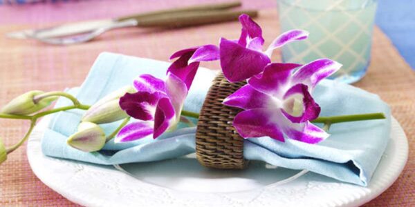 Y no sólo podéis usar las flores preservadas para el ramo de la novia. Un uso muy común es utilizarlas como servilleteros en el banquete, con lo que además de una bonita decoración, estaréis ofreciendo a los invitados un recuerdo de vuestra boda que durará años.